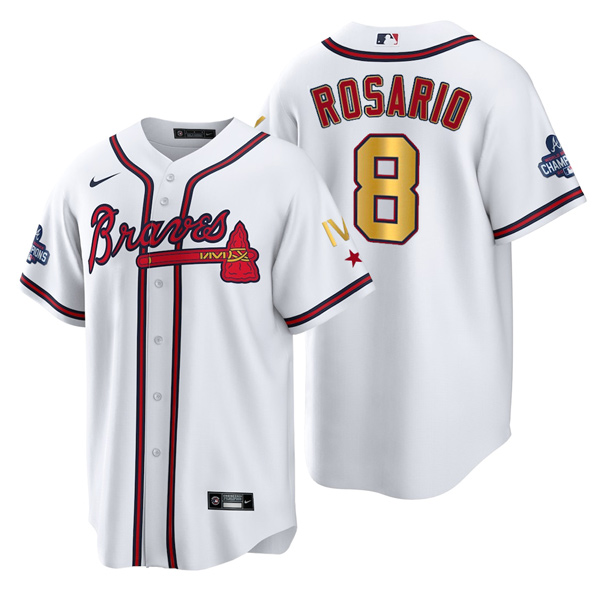 Men’s Atlanta Braves Eddie Rosario 2022 White Gold Program 4-Time World Series Champions Jersey