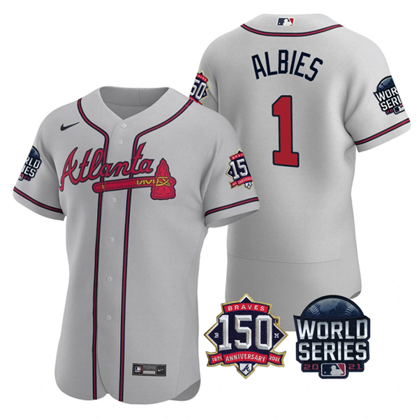 Men’s Atlanta Braves Ozzie Albies 2021 World Series Stitched Jersey Flex Base Gray