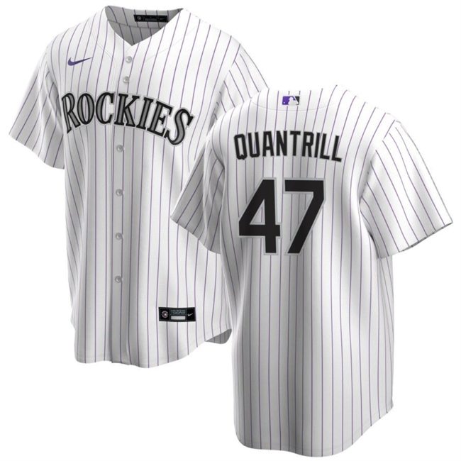 Men’s Colorado Rockies #47 Cal Quantrill White Cool Base Stitched Baseball Jersey