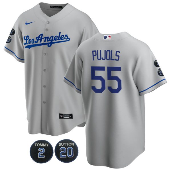 Men’s Los Angeles Dodgers Albert Pujols Cool Base Jersey – Stitched Gray