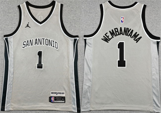 Youth San Antonio Spurs #1 Victor Wembanyama Silver 2025 Statement Edition Stitched Jersey